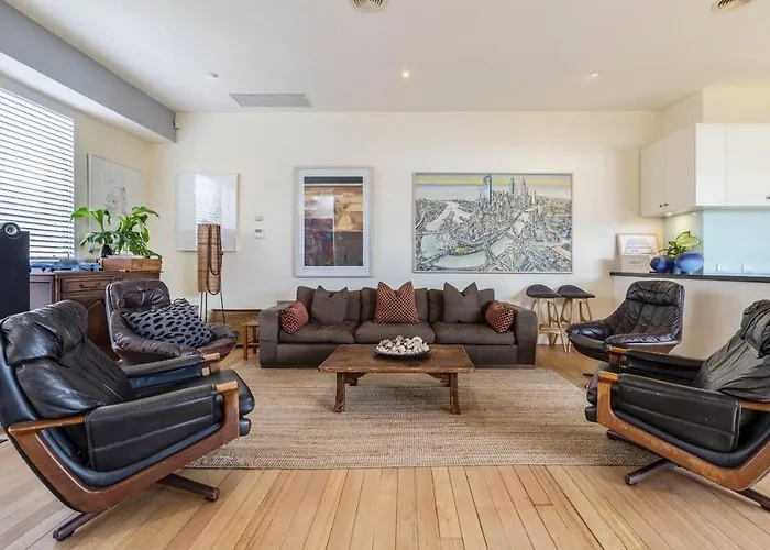 Situada en el barrio Richmond de Melburne, la villa está a tan solo 6 minutos a pie de la Calle Victoria y a 6 km del Teatro Palais. La Eureka Tower Melbourne se encuentra cerca de esta casa de vacaciones, y la estación de autobuses Bridge Road está a 950 metros. Situada a unos 5 minutos a pie de Richmond Uniting Church, la villa The Atrium - Discover A Vibrant Rooftop Haven es uno de los destinos favoritos de fieles y turistas.